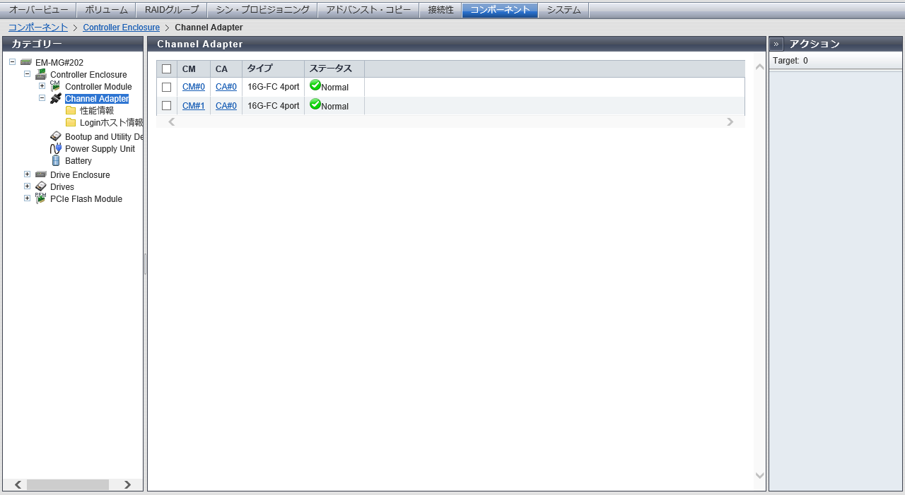 CA (Channel Adapter)の情報が表示されます。