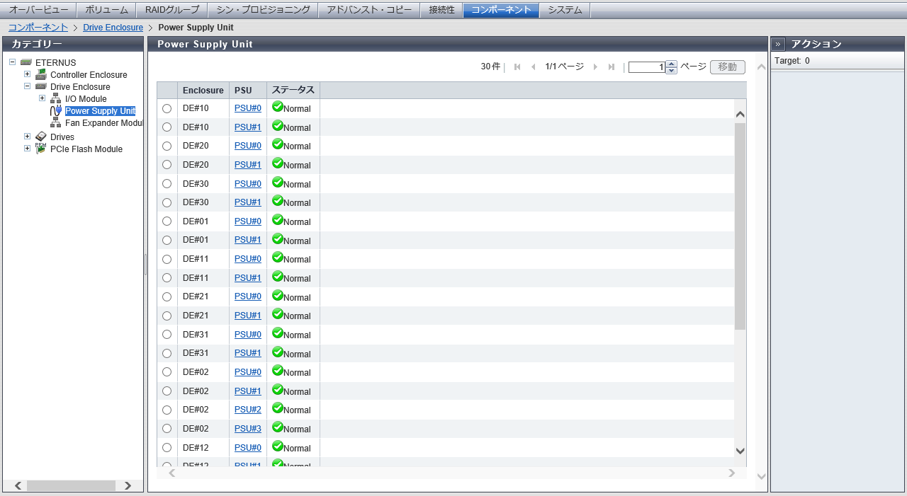 DE(Drive Enclosure)用の PSU(Power Supply Unit)の情報が表示されます。