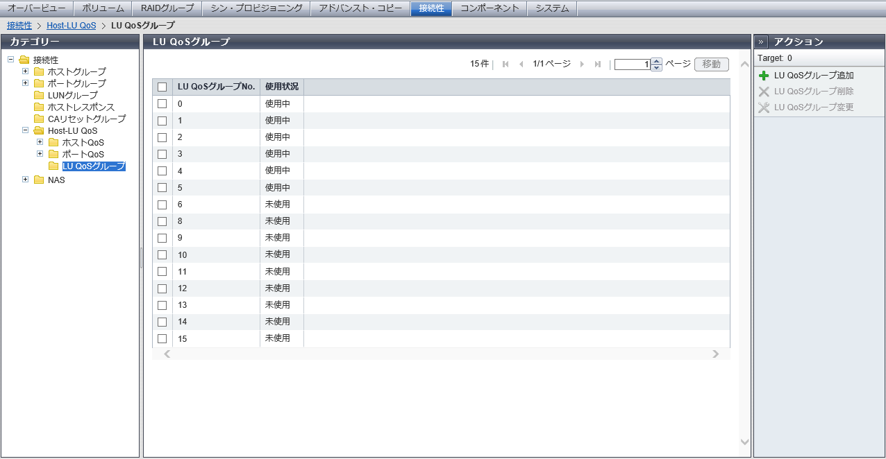 装置に登録されているLU QoSグループの一覧が表示されます。