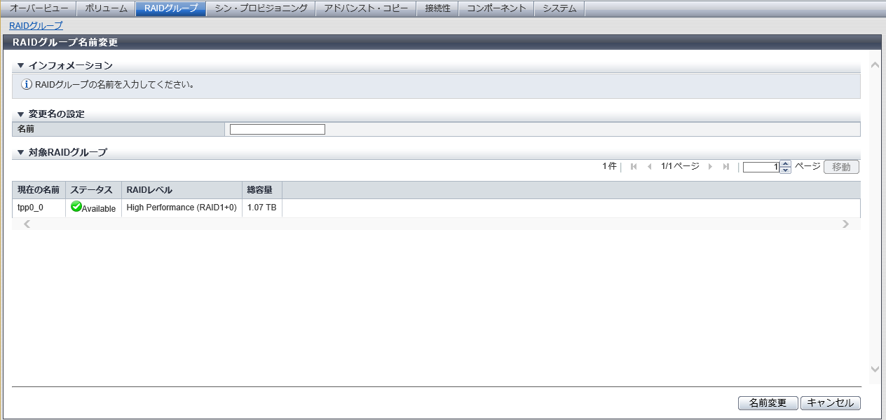 装置に登録されているRAIDグループの名前を変更します。