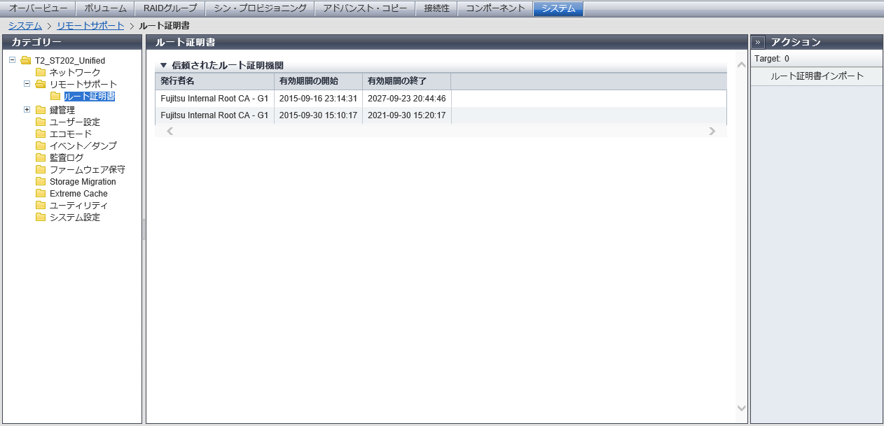 • 初期値は、装置に登録されたルート証明書が表示されます。ルート証明書を更新した場合、最新の証明書だけが表示されます。ルート証明書の更新については、「ルート証明書インポート」を参照してください。