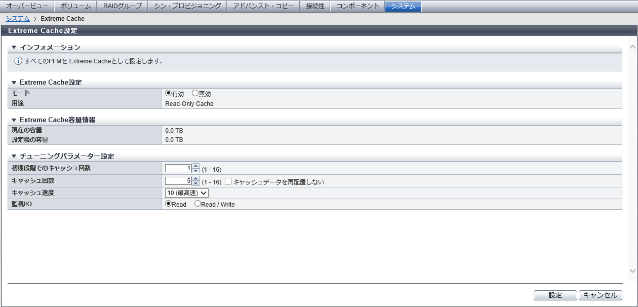 業務運用中であっても、Extreme Cacheの有効/無効、キャッシュ容量、およびチューニングパラメーターの変更は可能です。