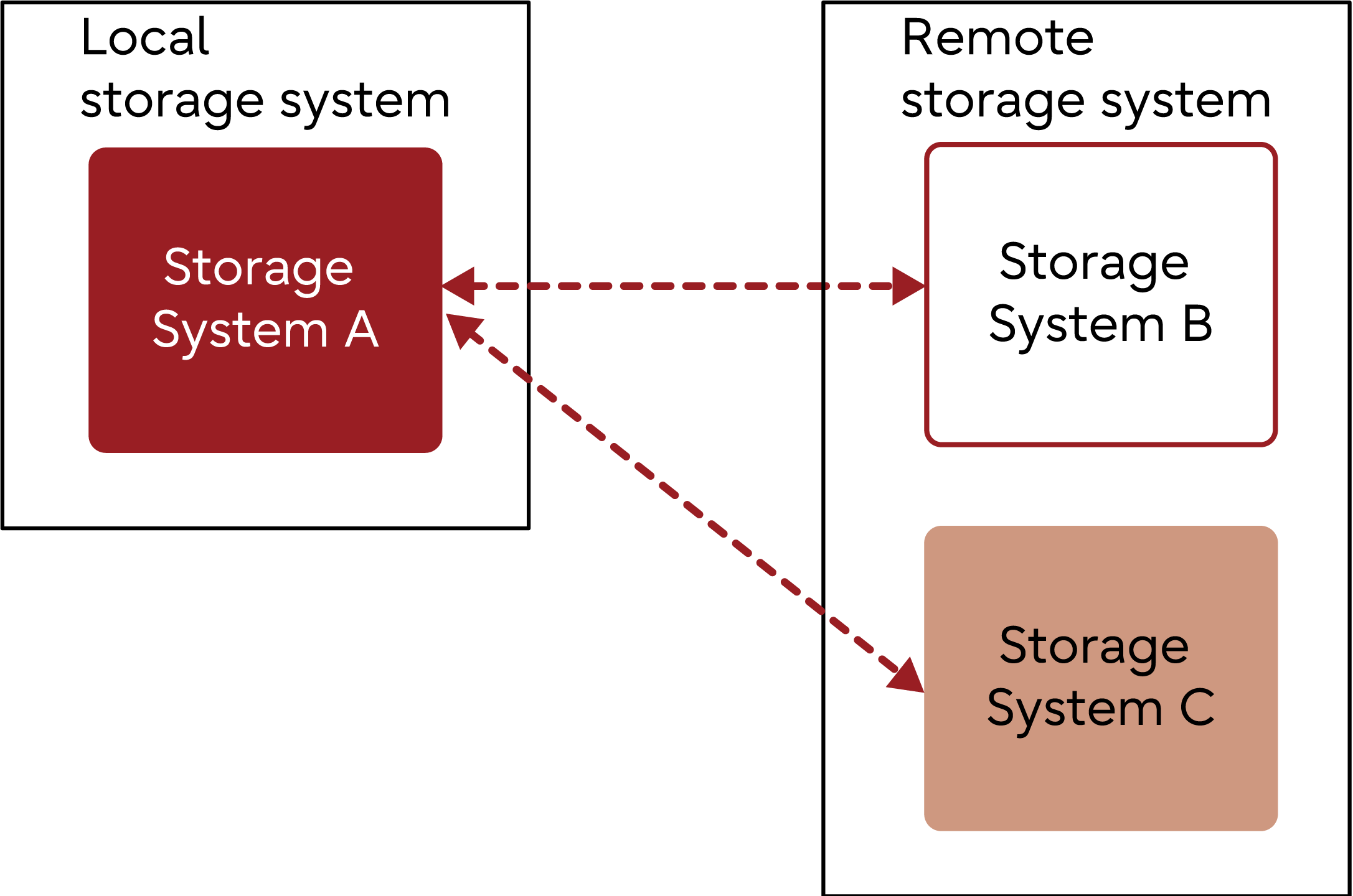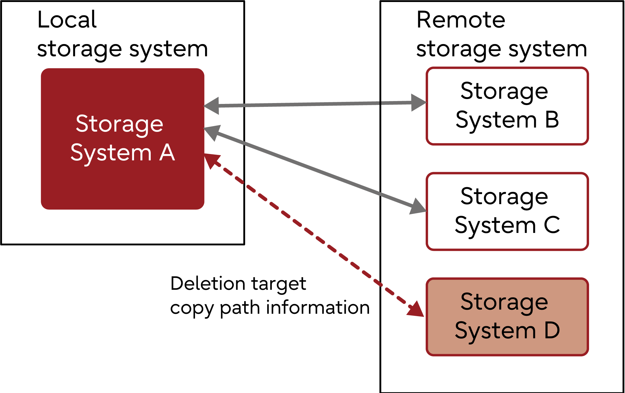 CautionIn this example, a new copy path is added between the local storage system (Storage System A) and Storage System C in a configuration where a copy path between the local storage system (Storage System A) and Storage System B has already been established.