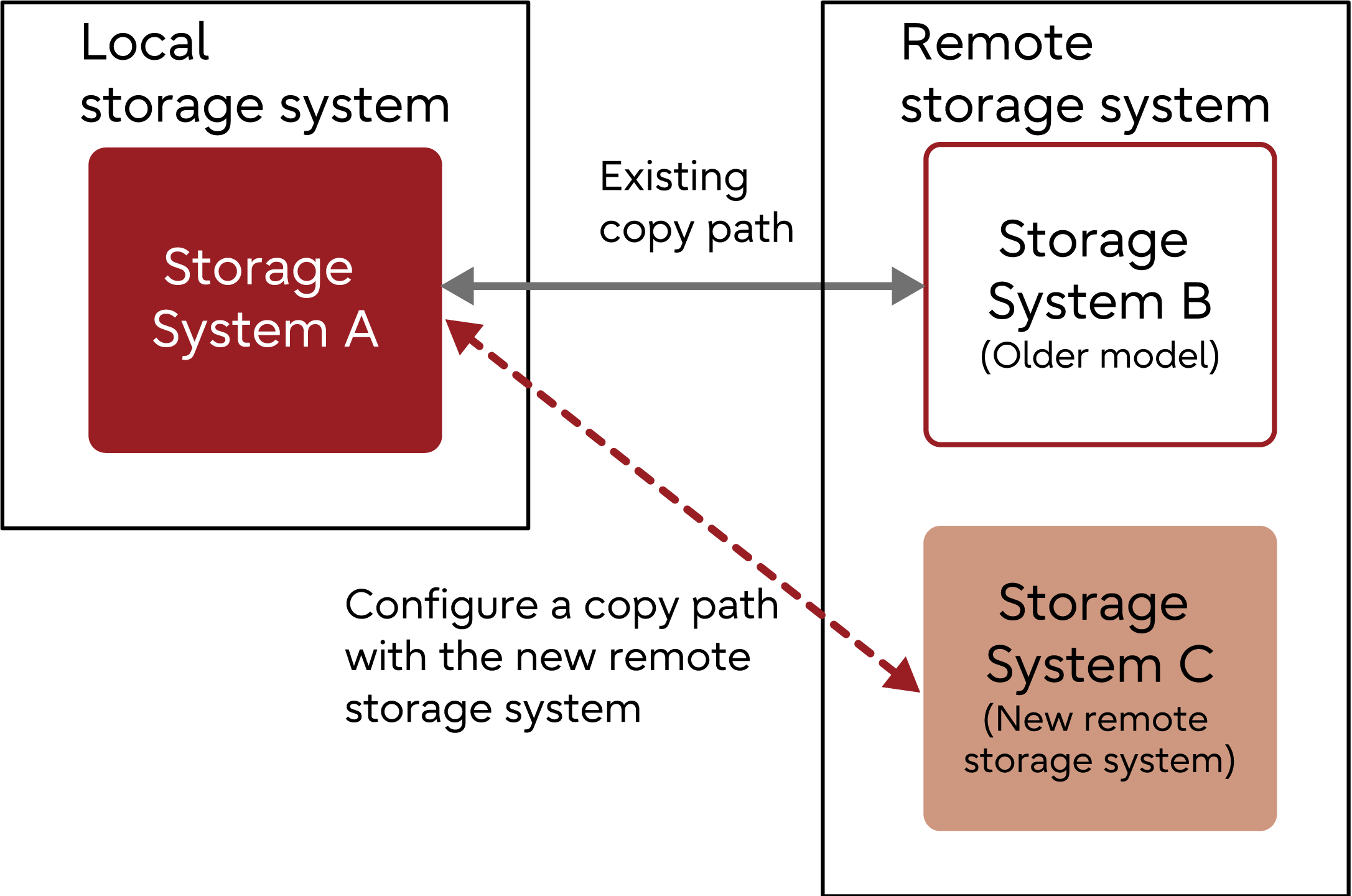 Adding a new remote storage system to the existing copy path that includes older models (when a new remote storage system is connected to the local storage system)
