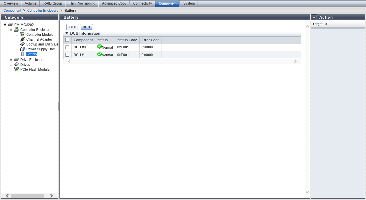 The BBU status is displayed. Refer to "Component Status" for details. |