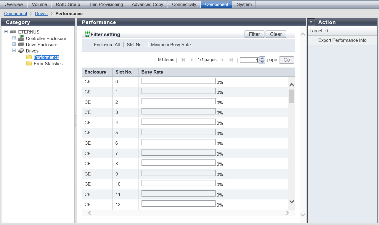 Specify the minimum busy rate for the drive that is to be displayed. The drives with a busy rate that exceeds the specified minimum busy rate are displayed. When not using the minimum busy rate for filtering, leave this item blank. |