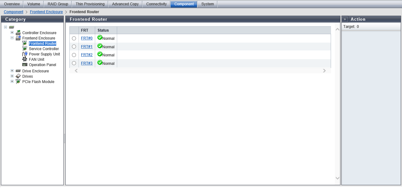The FRT status is displayed. Refer to "Component Status" for details. |