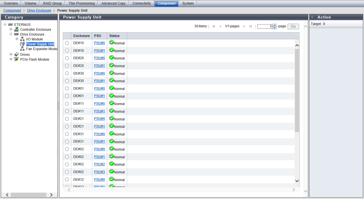This function displays the information of the Power Supply Unit (PSU) for the Drive Enclosure (DE).