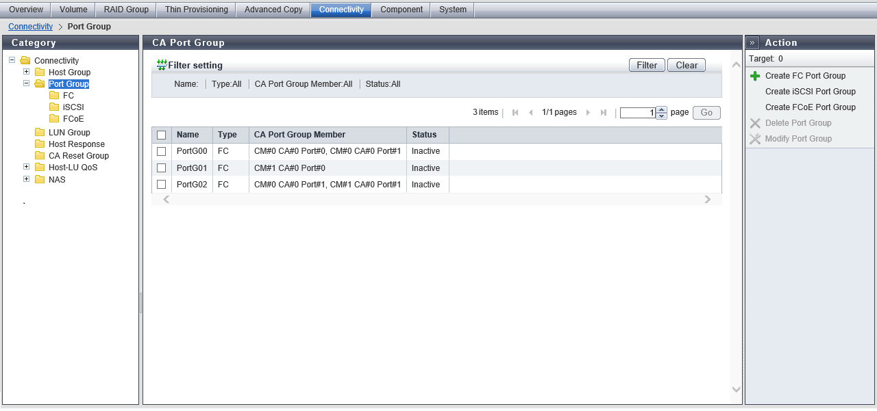 The CA type of a CA port group is displayed. FC iSCSI SAS |