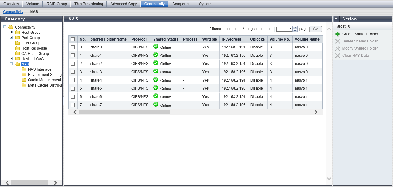 When attempting to display the list of shard folders while a meta cache redistribution is being performed for NAS volumes (NAS user volumes or NAS backup volumes), the process may be delayed for a maximum of two minutes.