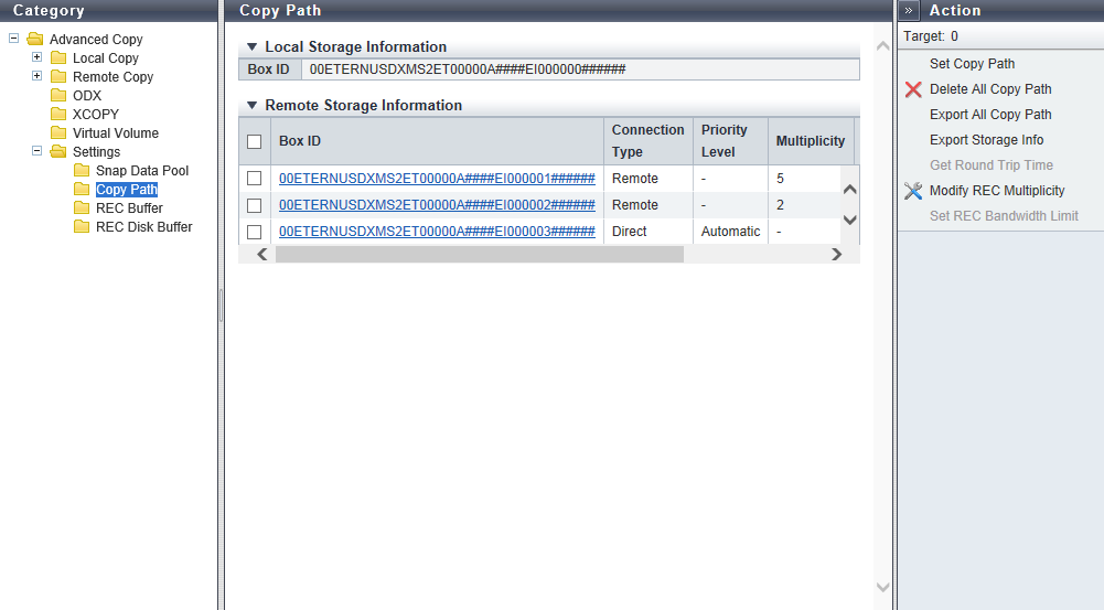 The Box ID of the remote storage system that has a path to the local storage system is displayed. Click this item to display the [Copy Path Property] Screen. |