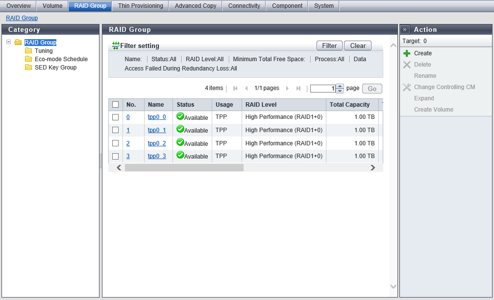 Expand the selected RAID group capacity by using the Logical Device Expansion function. |