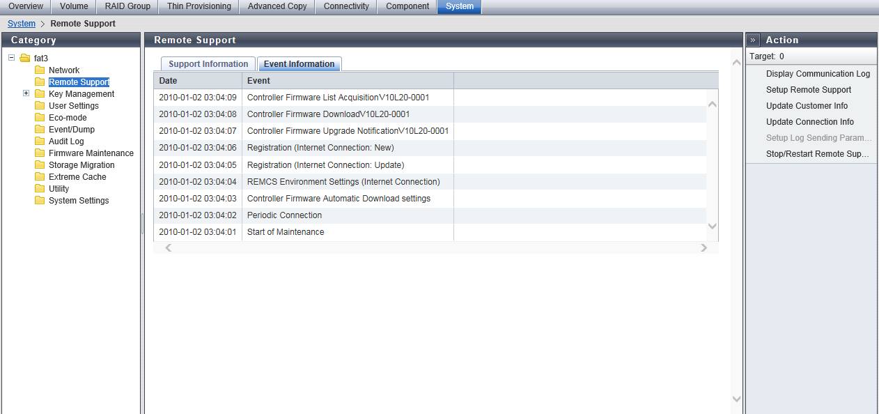 This function displays the REMCS function settings and the operation status in the storage system.