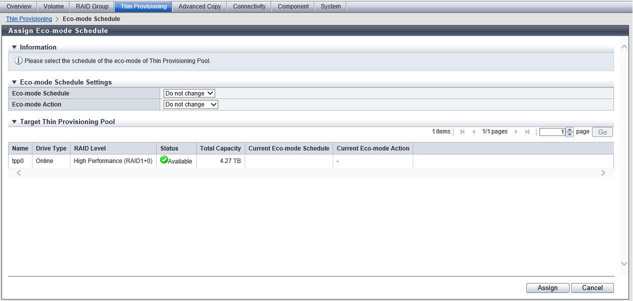 Assign Eco-mode Schedule (Thin Provisioning Pool)