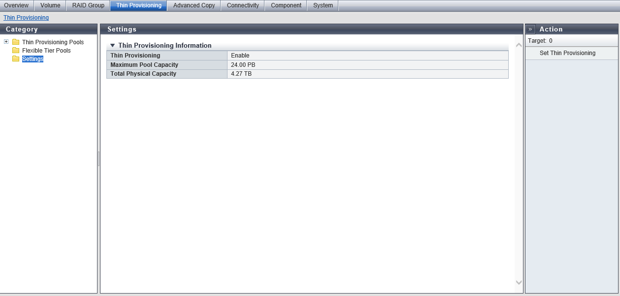 Whether the Thin Provisioning function is enabled or disabled is displayed. |