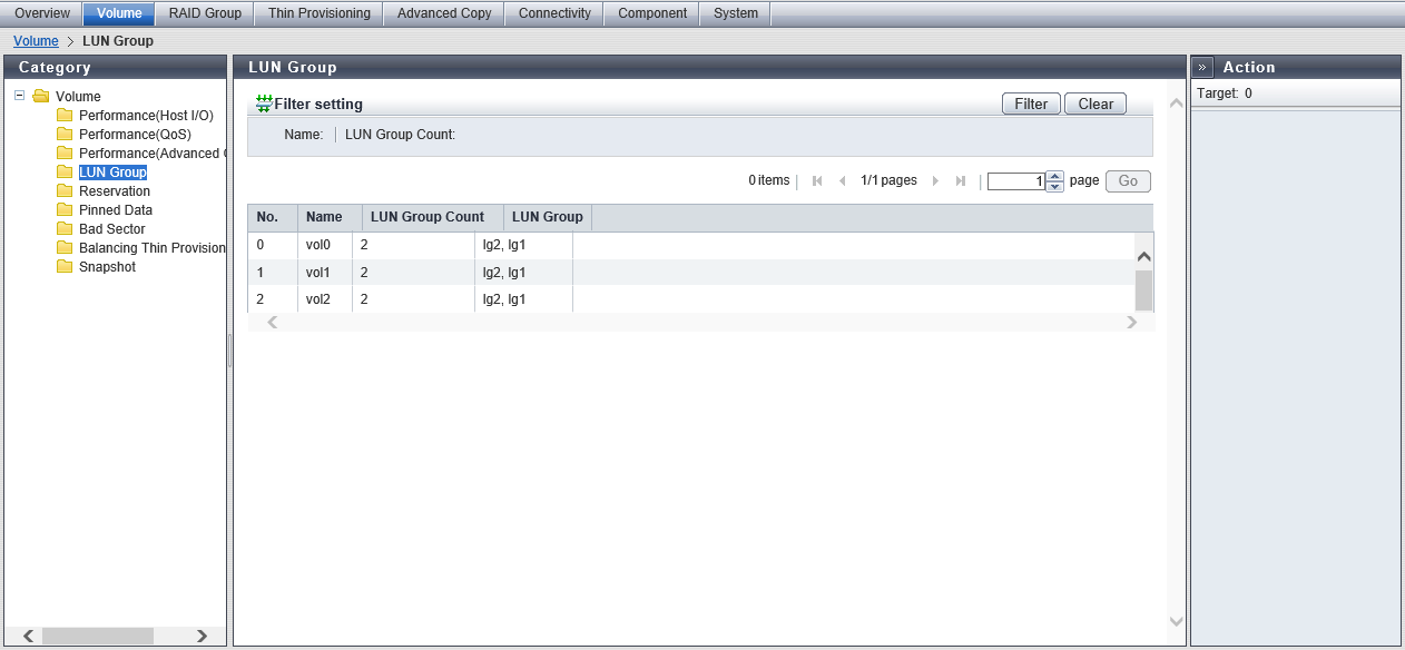 Input the number of LUN groups of the volume that is to be displayed. When not using the LUN group count for filtering, leave this item blank. |