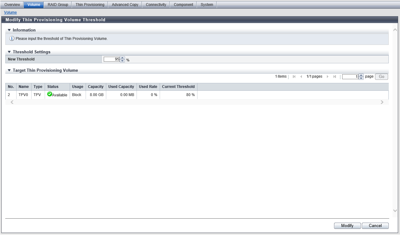 This function changes the threshold of a TPV that is created by using the [Create Volume] function.