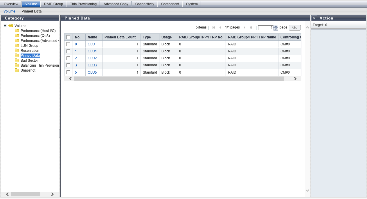 When a system message that indicates the detection of pinned data is displayed in the [Overview] screen, or when a "Pinned data" event is notified by Host Sense Key Code Qualifier or SNMP Trap, use this function to check the detected pinned data.