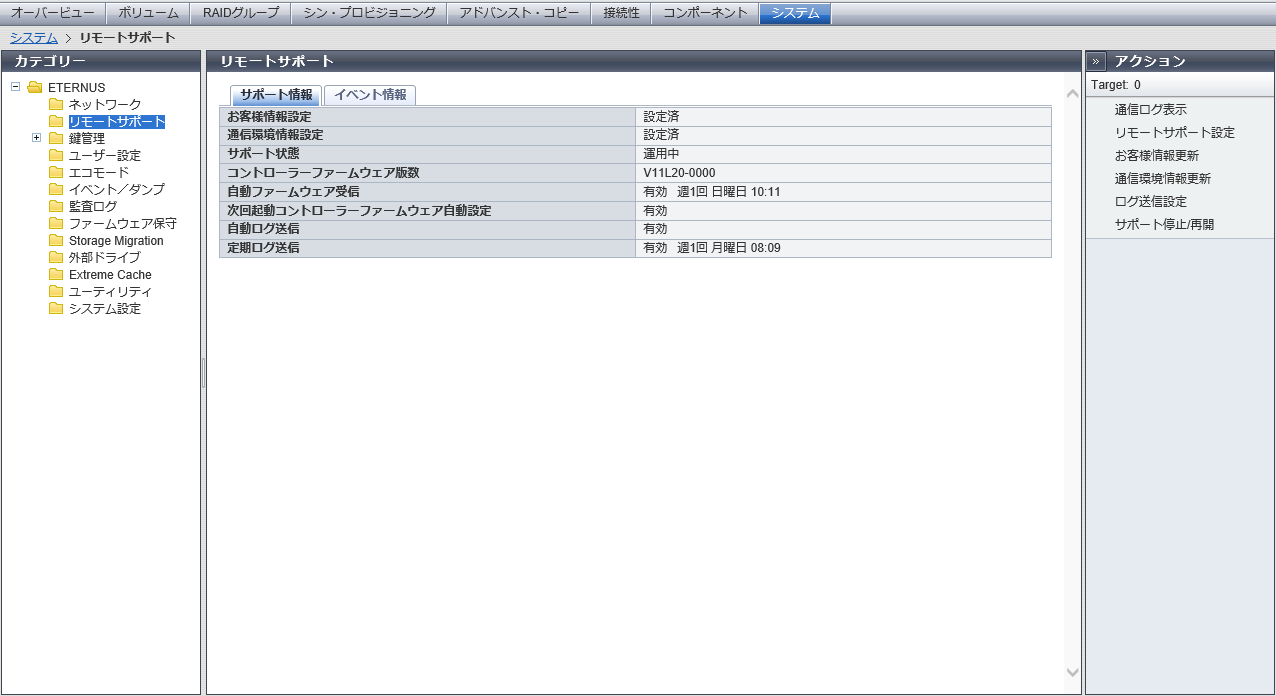 カテゴリーの「REMCS」をクリックして表示される [ REMCS ] 画面から REMCSのアクションを実行できます。