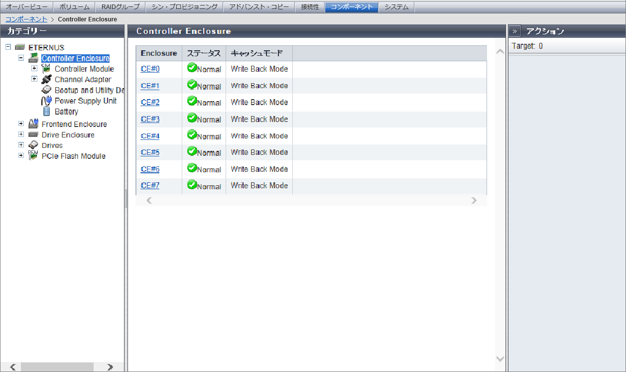 CE一覧は、ETERNUS DX900 S5またはETERNUS DX8900 S4の場合だけ表示されます。