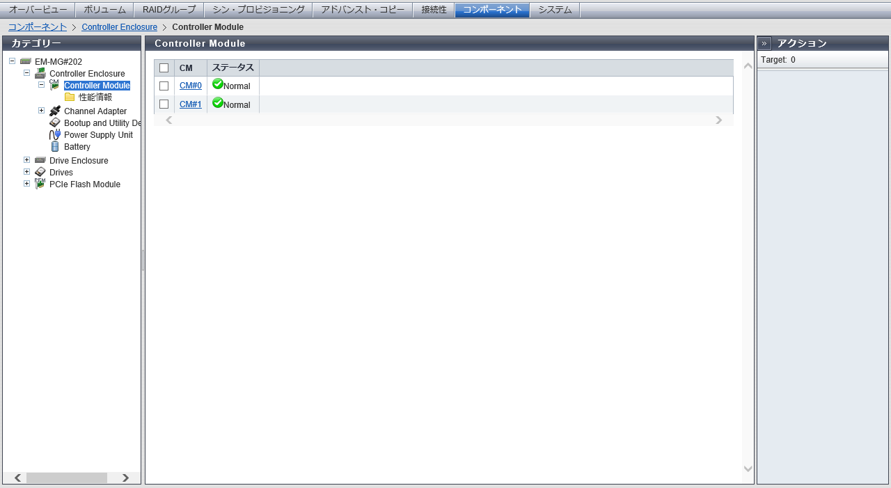 CM (Controller Module)の情報が表示されます。