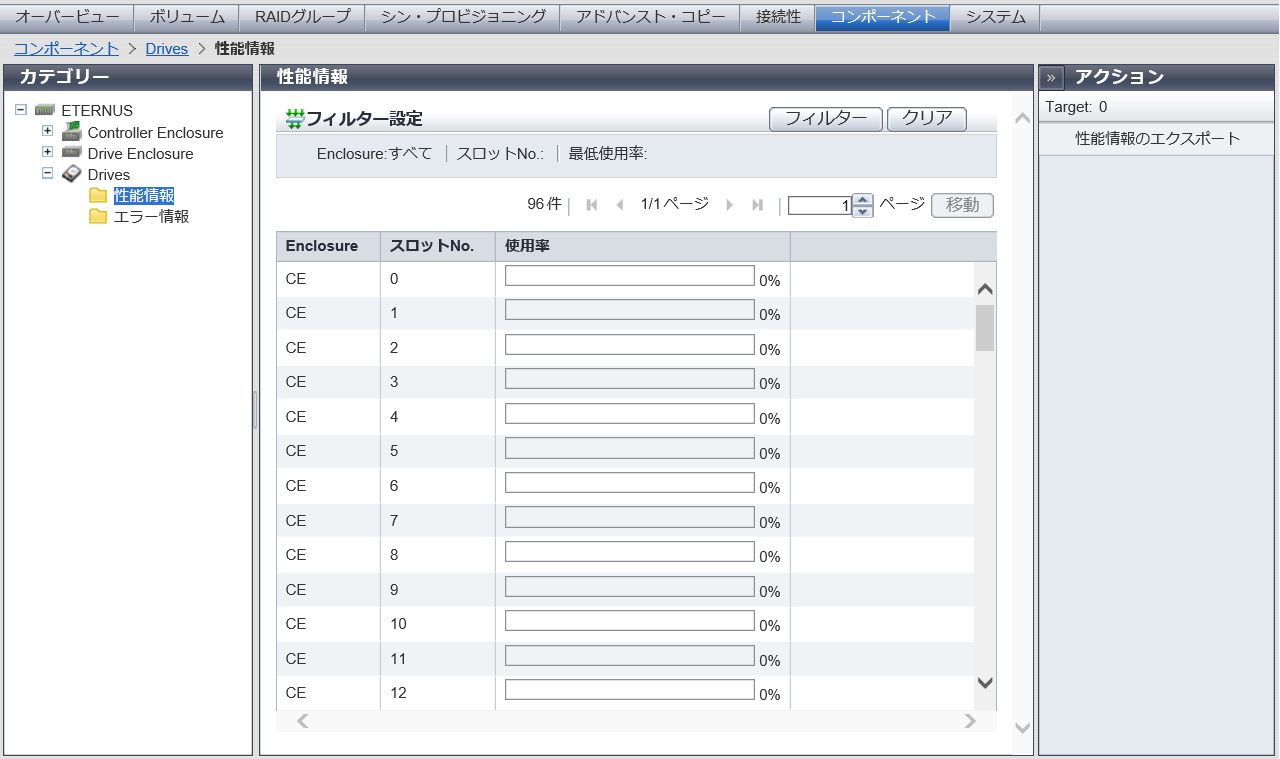 表示したいエンクロージャを選択します。 エンクロージャで絞り込まない場合、「すべて」を選択してください。 |