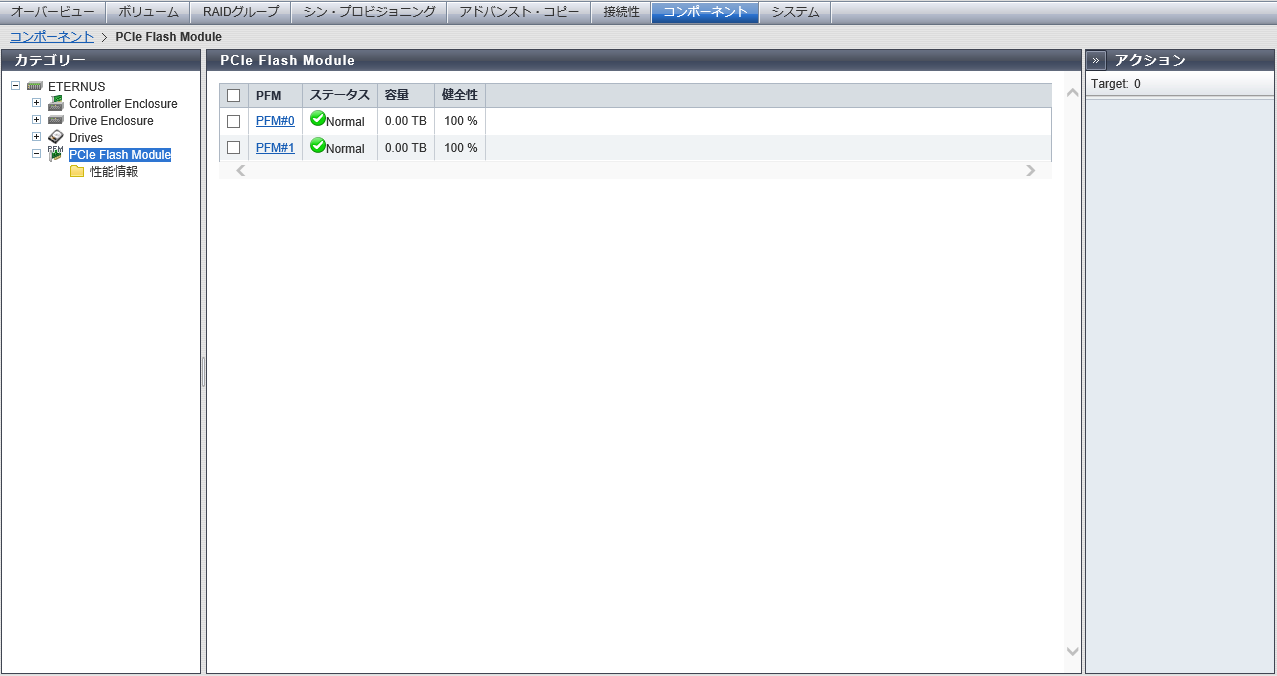 本機能では、装置に搭載しただけ(活性増設操作前)の PFMの情報も表示されます。