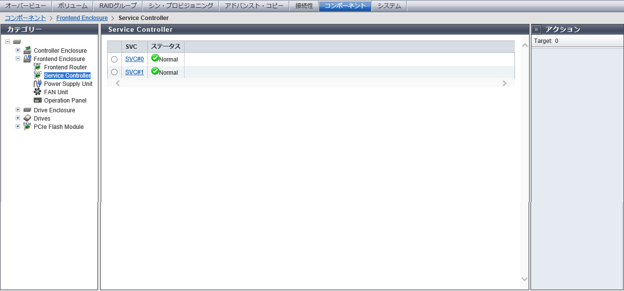 SVCのステータスが表示されます。 詳細は、「部品のステータス」を参照してください。 |