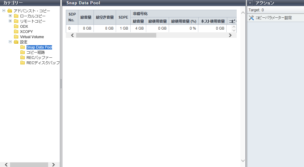 SDVへの割当単位 SDPE (Snap Data Pool Element) が表示されます。 1GB 2GB 4GB |