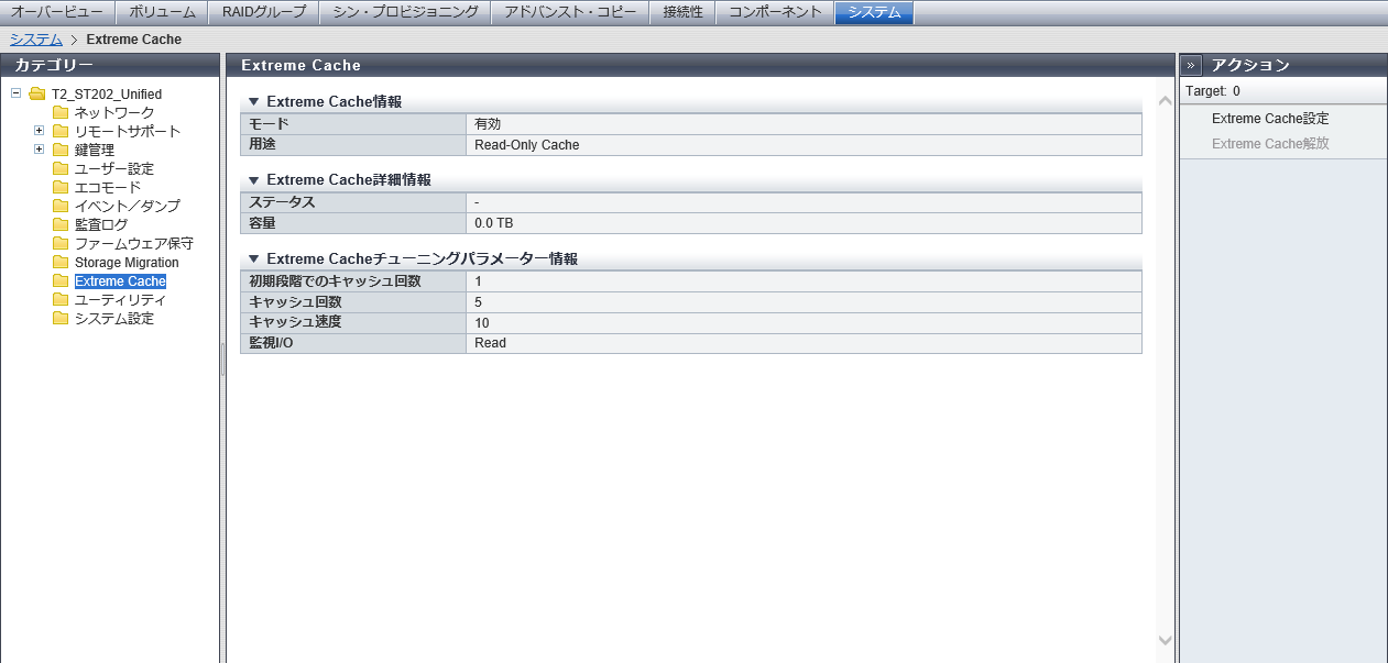 装置の Extreme Cache が有効か、無効かが表示されます。 |