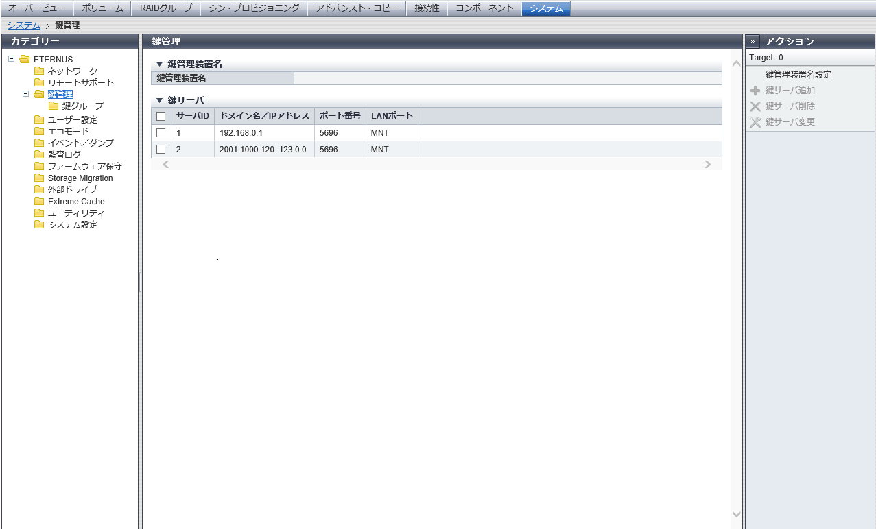 鍵管理装置名と鍵サーバの設定内容が表示されます。