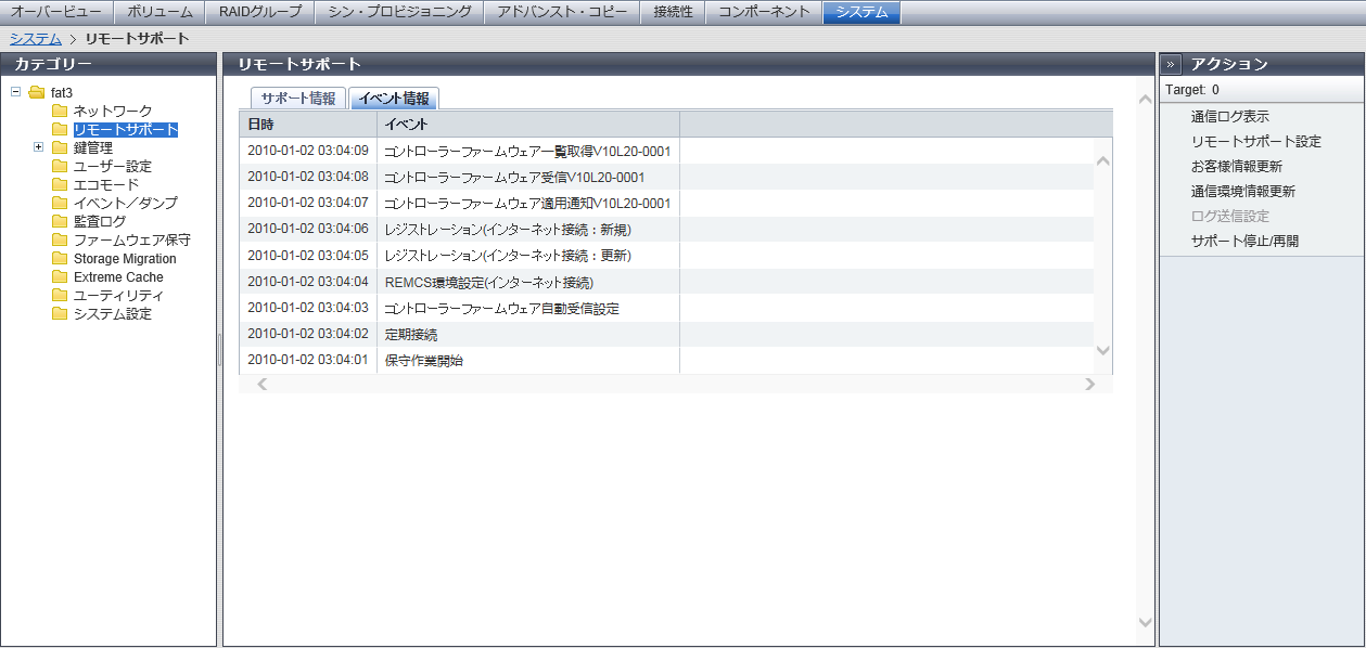 自動ファームウェア受信が有効か、無効かが表示されます。 ユニファイドストレージ環境の場合、本項目は表示されません。