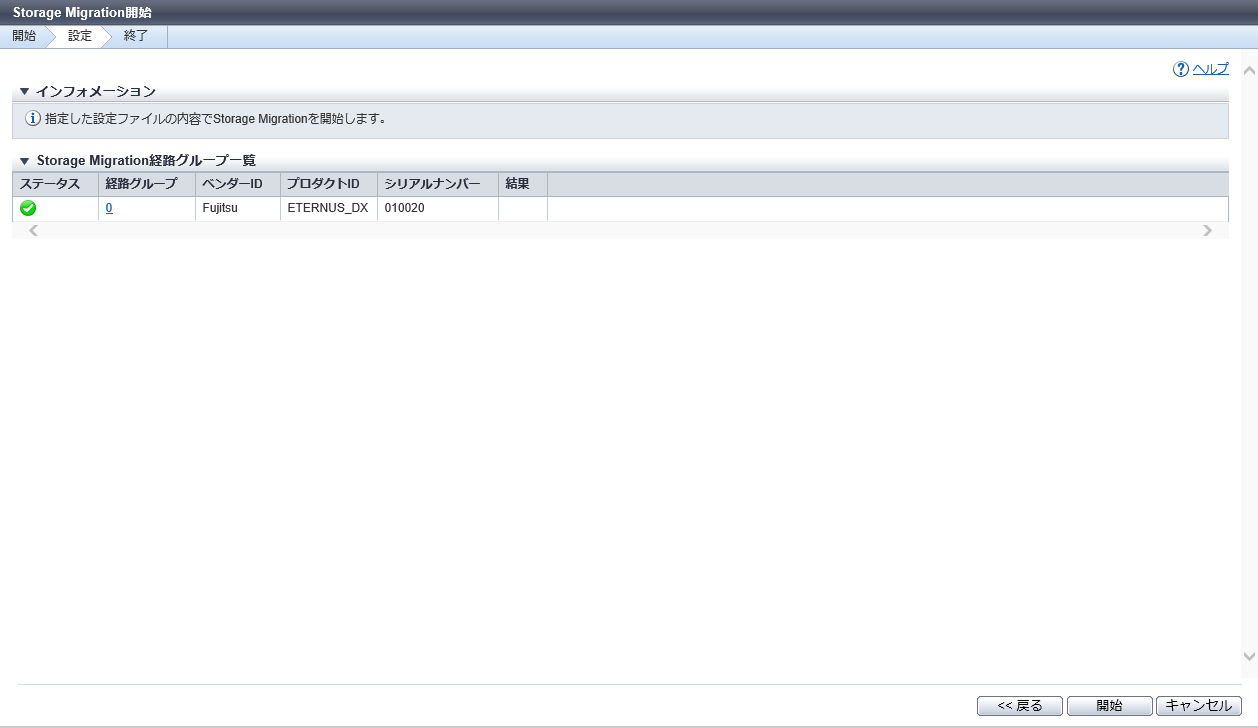 [ 完了 ] ボタンをクリックして、[ Storage Migration ] 画面に戻ります。