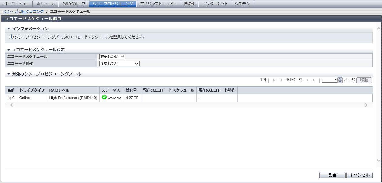 エコモードスケジュール割当(シン・プロビジョニングプール)