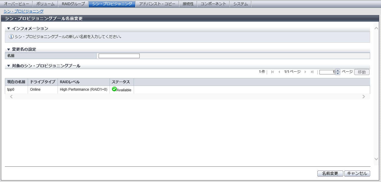 → シン・プロビジョニングプール名の変更が開始されます。
