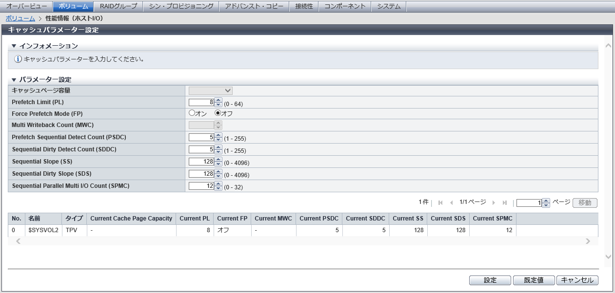 キャッシュパラメーター設定対象ボリュームタイプ(設定対象:)