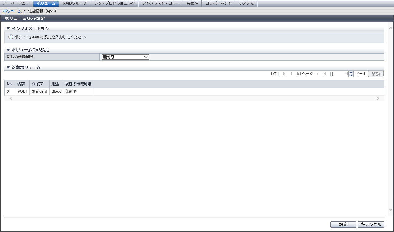 ボリュームQoS設定