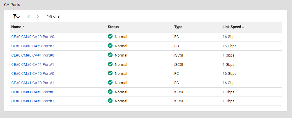 Select whether to display the "Status" column in the list. The "Status" column is displayed by default. This item is also used to select the status of the CA port that is to be displayed in the list. The CA ports that are in the selected status are displayed in the list. If no CA port statuses are selected, the list will not be filtered by status. No CA port statuses are selected by default.