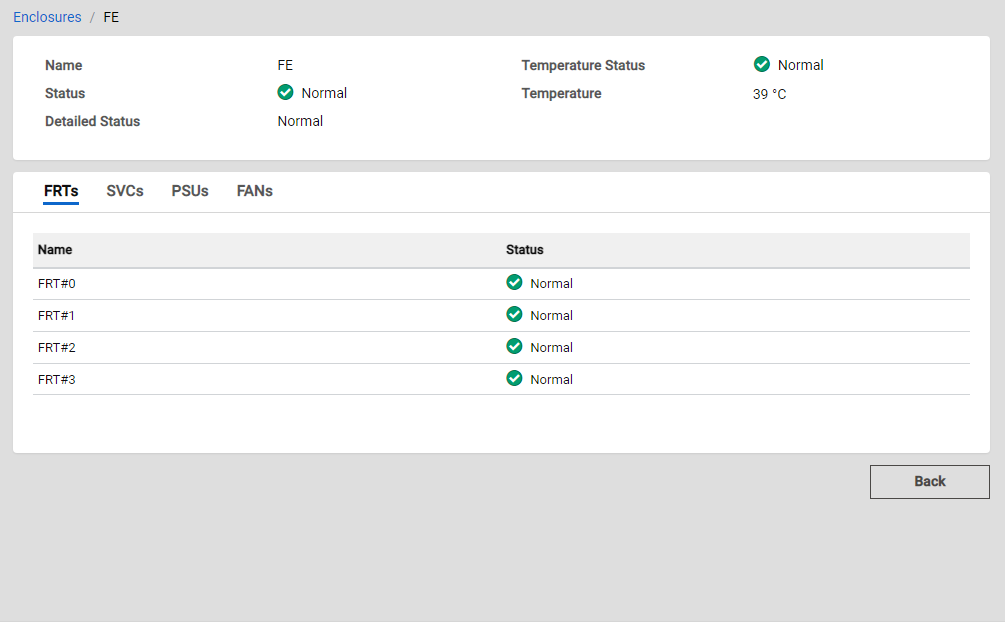 The detailed enclosure status is displayed.