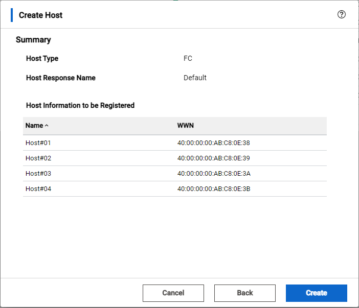 例:Create HostのSummary Dialog(FCホストの場合)