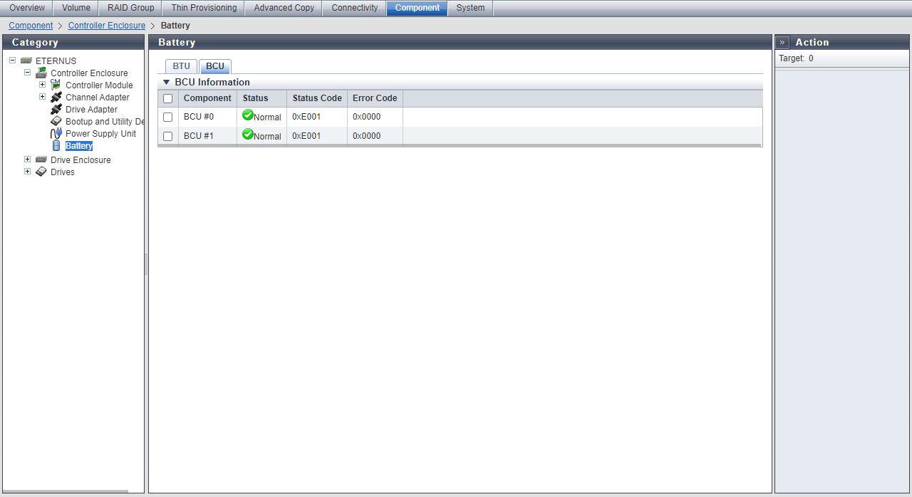 This function displays the Battery Unit (BTU) information and the Battery Control Unit (BCU) information.