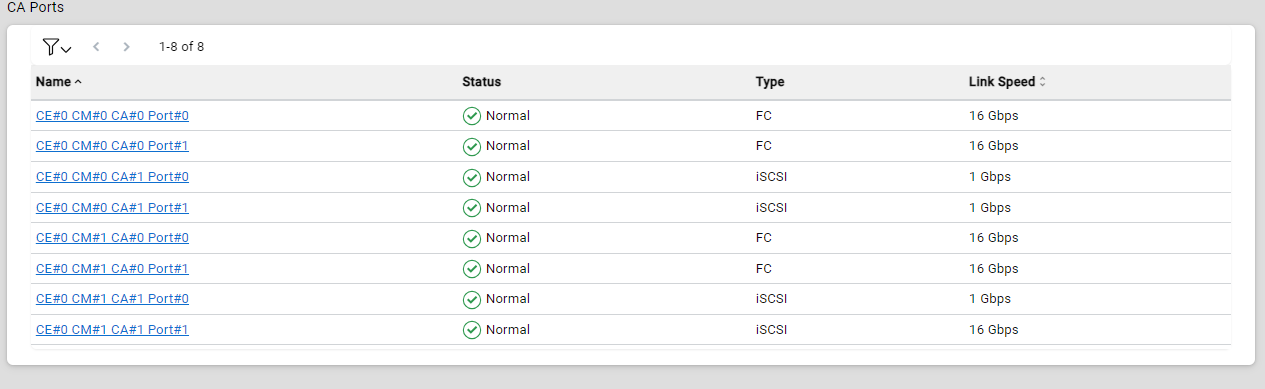 The link status of the CA port is displayed. The unit is "Gbps". Information