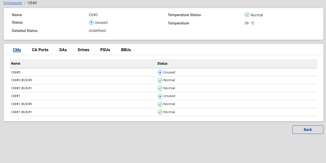 The detailed enclosure status is displayed.