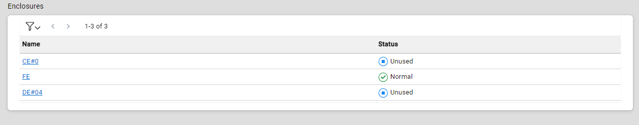 The enclosure name is displayed. Click an enclosure name to display the Detail View for that enclosure type. |