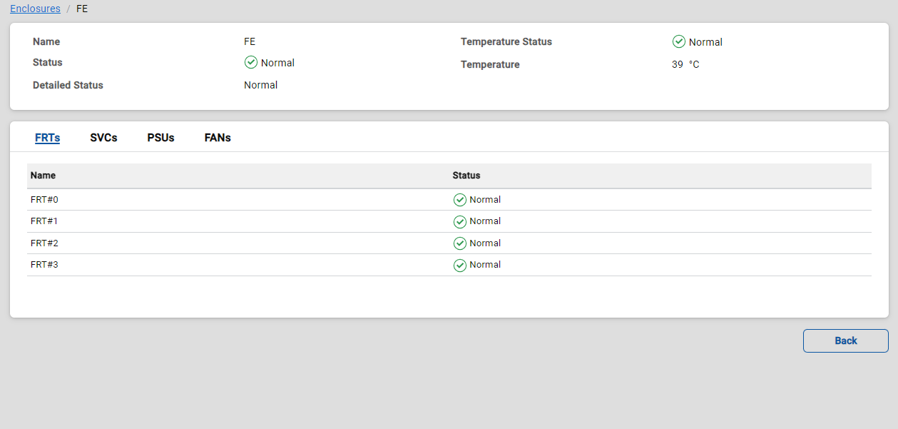 The detailed enclosure status is displayed.