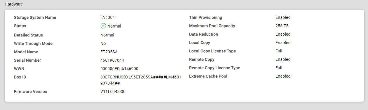 The maximum pool capacity for the storage system is displayed. The capacity is displayed with the appropriate "TB" or "PB" unit. Information