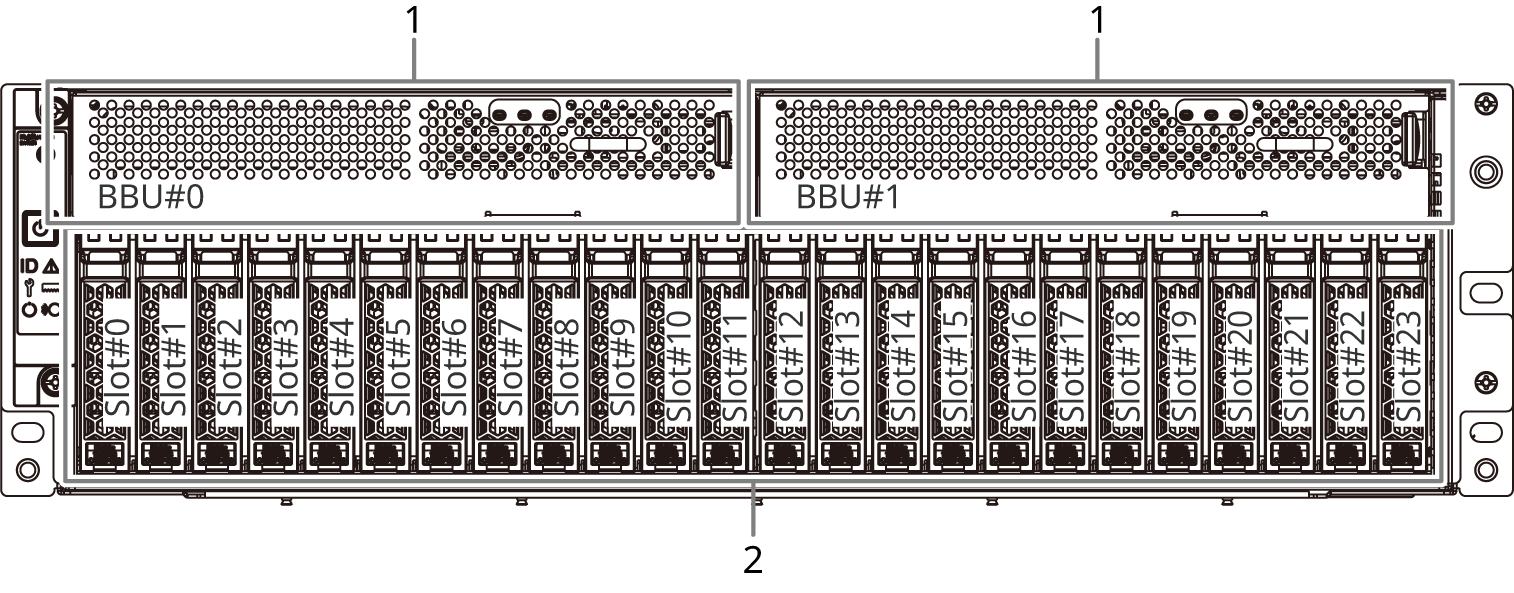 Figure: Front View of a Controller Enclosure (for the ETERNUS DX600 S6, without a Front Cover)