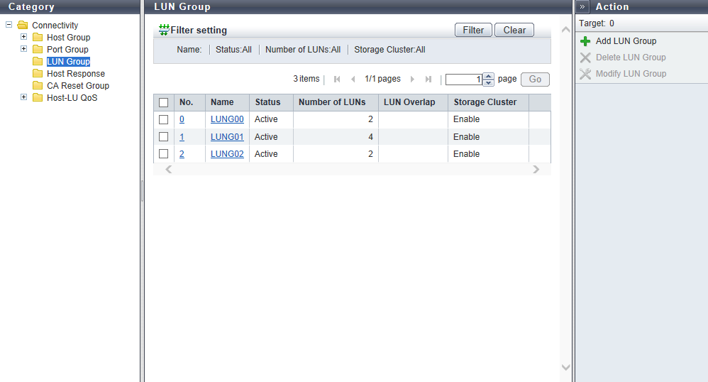 For the procedure, refer to "Operating Procedures" in "Add LUN Group" of "Web GUI User's Guide".