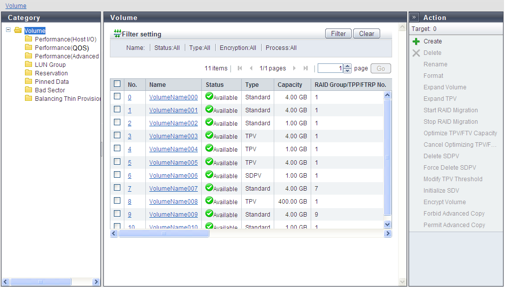On the [Volume Details] screen of ETERNUS Web GUI, the status of volumes that you have created is displayed. Check if volumes are set correctly.