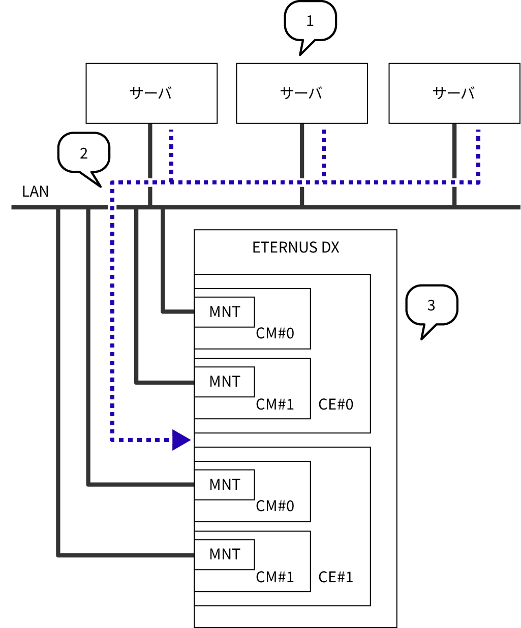 *1 : サーバ側で、ETERNUS DXの起動を待ち合わせるための設定が必要です。
